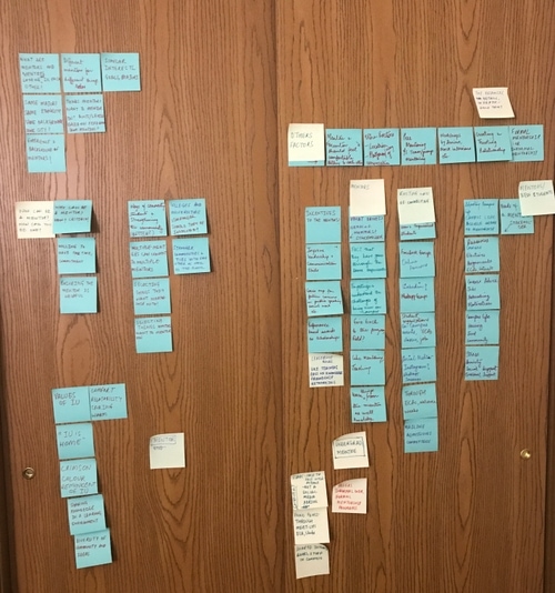 An experience that allows mentors and mentees to discover each other. Based on my research, I decided to take an informal approach to mentorship where new students could approach as many experienced students as they wanted based on their shared interests.